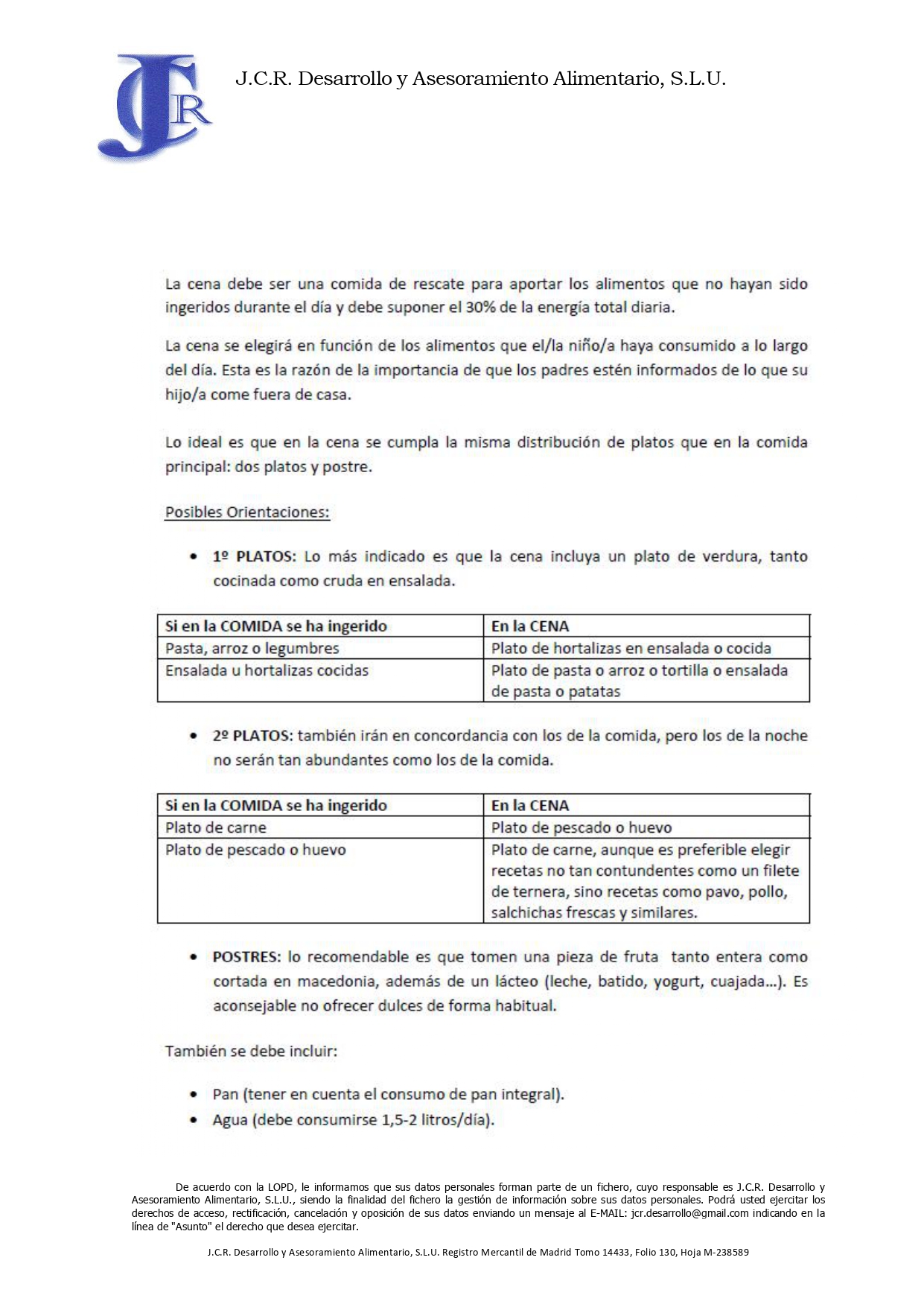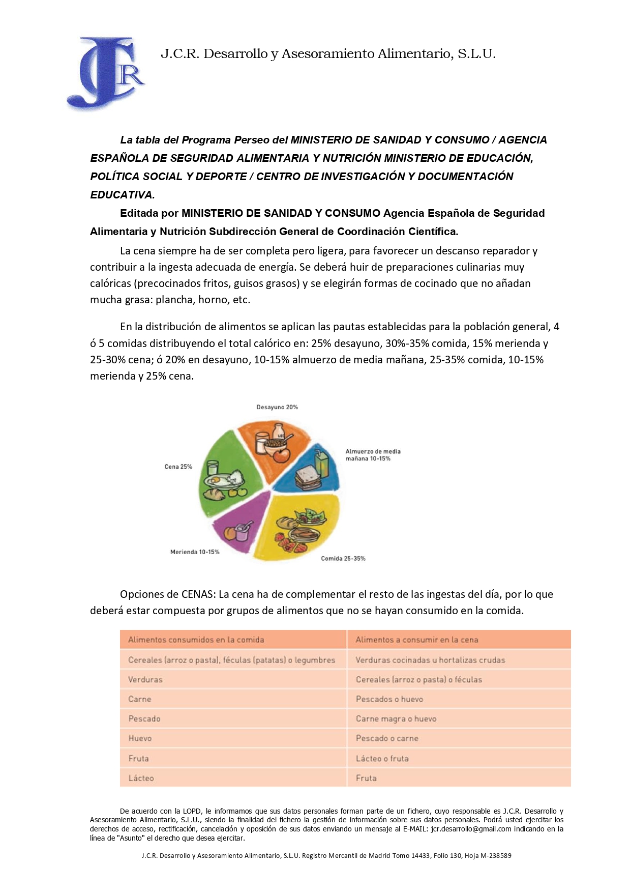 GUÍA RECOMENDACIONES PARA LAS CENAS