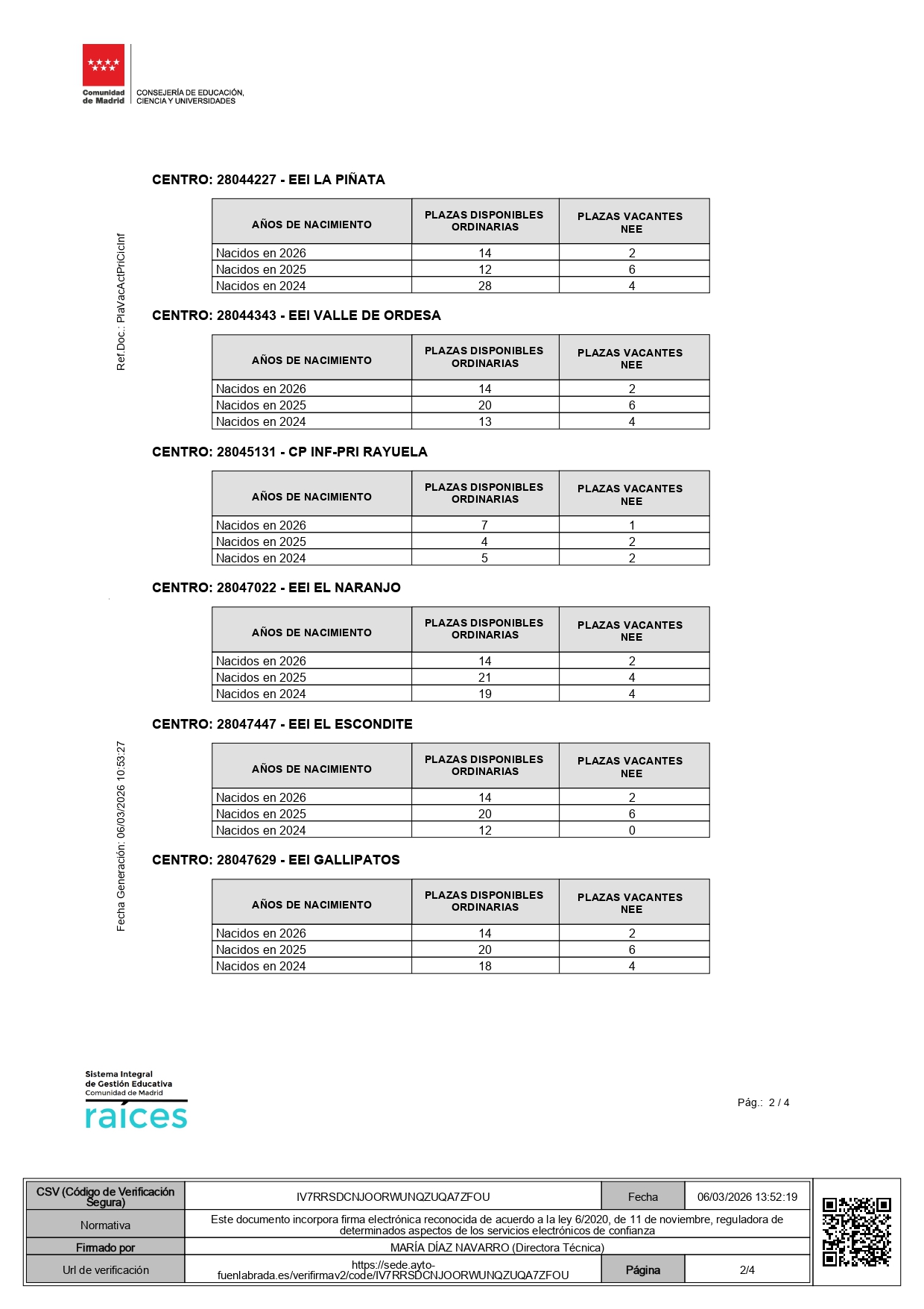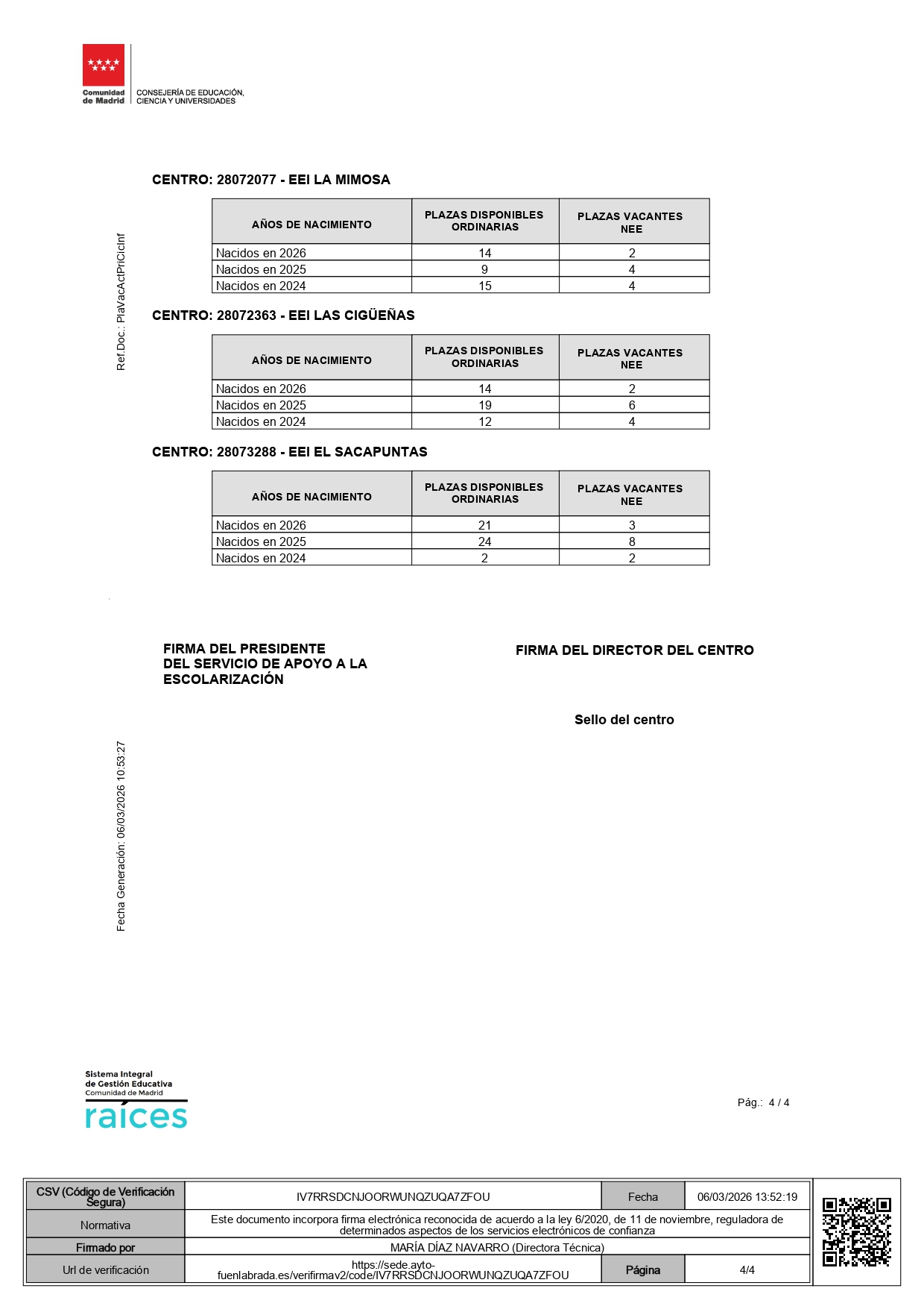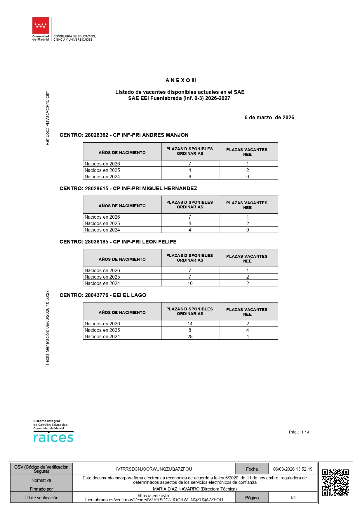 VACANTES PARA EL CURSO 2026-27